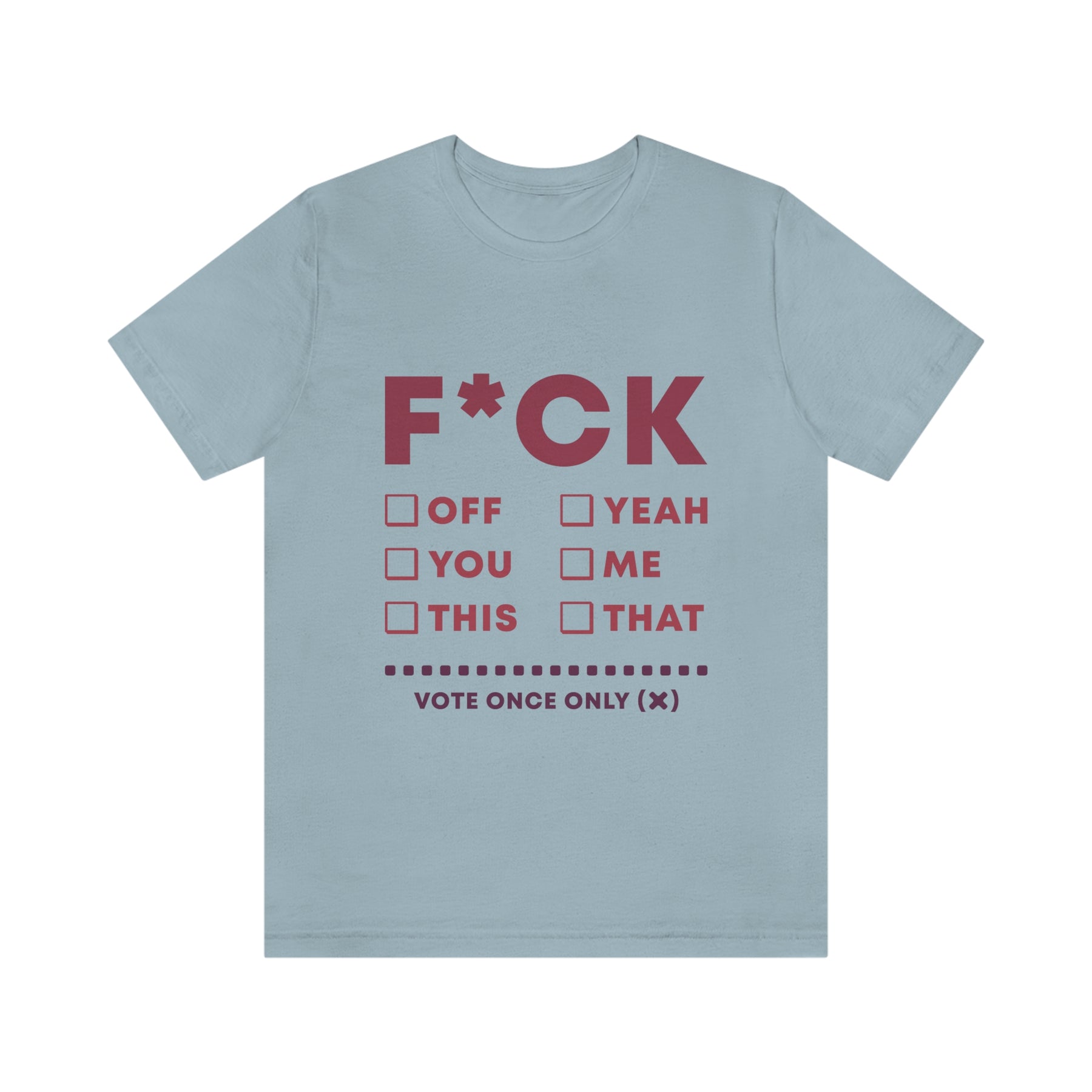 This classic unisex jersey short sleeve tee fits like a well-loved favorite. Soft cotton and quality print make users fall in love with it over and over again. These t-shirts have-ribbed knit collars to bolster shaping. The shoulders have taping for better fit over time. Dual side seams hold the garment's shape for longer.